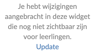 Een widget is 'gedeeld' vanaf het moment dat je hem minstens één keer voor leerlingen toegankelijk hebt gemaakt, bijvoorbeeld door in het widgetconfiguratiemenu op Delen te hebben geklikt. Op dat moment ontstaat de eerste versie, en vanaf dan heeft de widget ook een korte code.